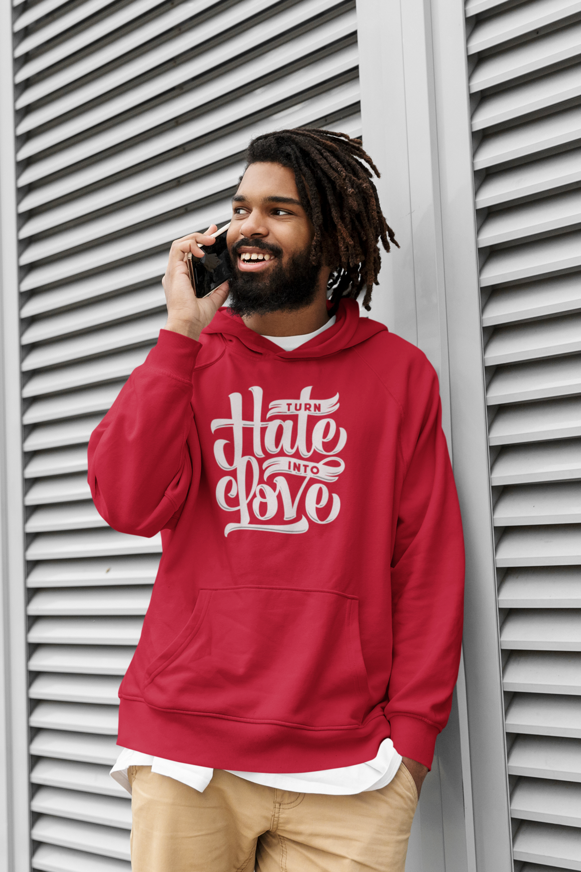This heavyweight hoodie features a 50/50 cotton-polyester blend for superior durability and comfort. Perfect for showing your support for the "Turn Hate Into Love" message.